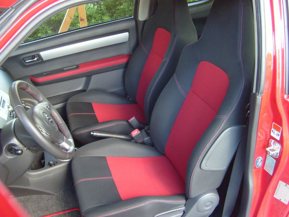 Røde Sport's sæder Røde Sport's sæder Røde Sport's sæder Efter monteret: Krom ringe over alt & Fartpilot med original betjening i rattet Efter monteret: Fartpilot med original betjening i rattet Efter monteret: Krom ringe omkring temp. regulering Efter monteret: Krom ringe omkring gearmanchet Efter monteret: Krom ringe omkring Luftdyserne i instrumentpanelet Efter monteret: Krom ringe omkring fordørs højttalerne