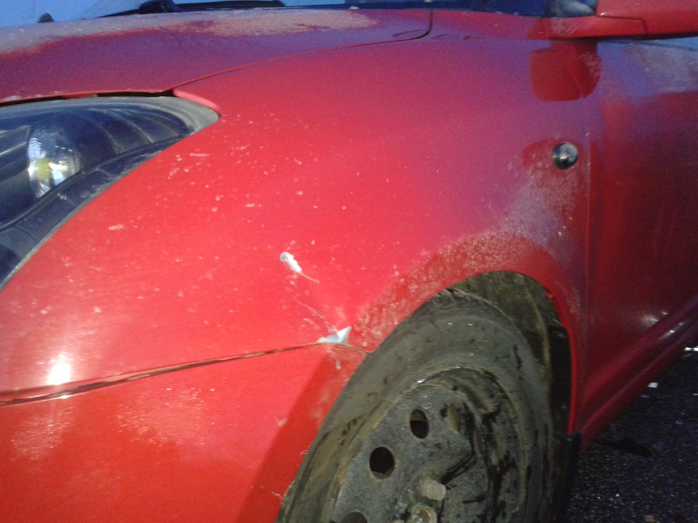 Som i kan se på fronten, der var intet at se. Baghjul har det ikke godt. Bilen, som kørte ind i mig :/