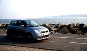Lækker baggrund + nye lygter.. En flot baggrund.. Så fik Swiften briller på.. Billeder ved solnedgang vil ALTID være flotte.. Nice..:D Lækkert at stå på en top ved solnedgang.. Uden blitz.. Så kan det se lyst ud.. Ja, for mørkt var det ikke men lækkert ser det da ud..hehe Suzukiswift.dk mærket er på..:o) Så kom mærket på.. Sorte striber er nu ret lækkert sammen med de røde..