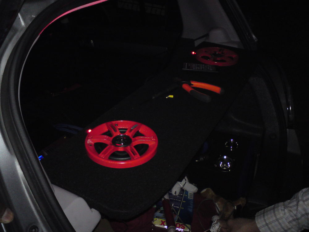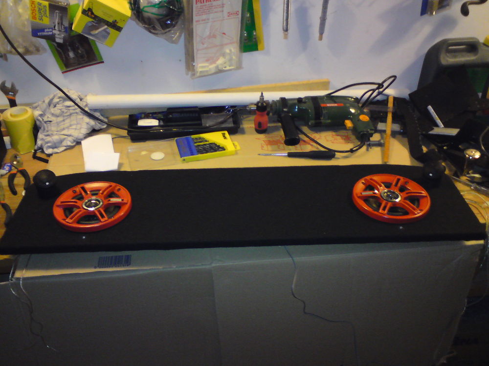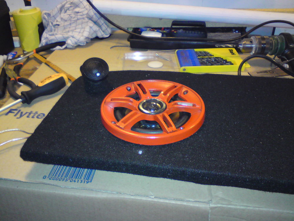 Færdig projekt.. Og så lidt røde dioder.. Færdigt projekt.. Færdigt, så skal den bare lige monteres..hehe Larkerede højtaller plus rainbears diskanter.. Første diskant monteret.. Så manglede der kun 1 igen.. Inden diskanterne blev monteret.. Cute rainbears.. (Rainbow diskanter) Rainbear (Rainbow diskant) Rainbear.. (Rainbow diskanter) Lige hvordan den ser ud på bunden.. Bunden af hattehylden med en crossover fra Rainbow.. Helt fra bunden.. Så er dioderne sat i.. Nu mangler dioderne, højttallerne og diskanterne at blive monteret.. Så blev begge huller lavet.. Første hul er færdig.. Så er det næste hul.. Sådan ser MDF pladen ud efter vi fik skåret den til og lavet hul til højttalerne..